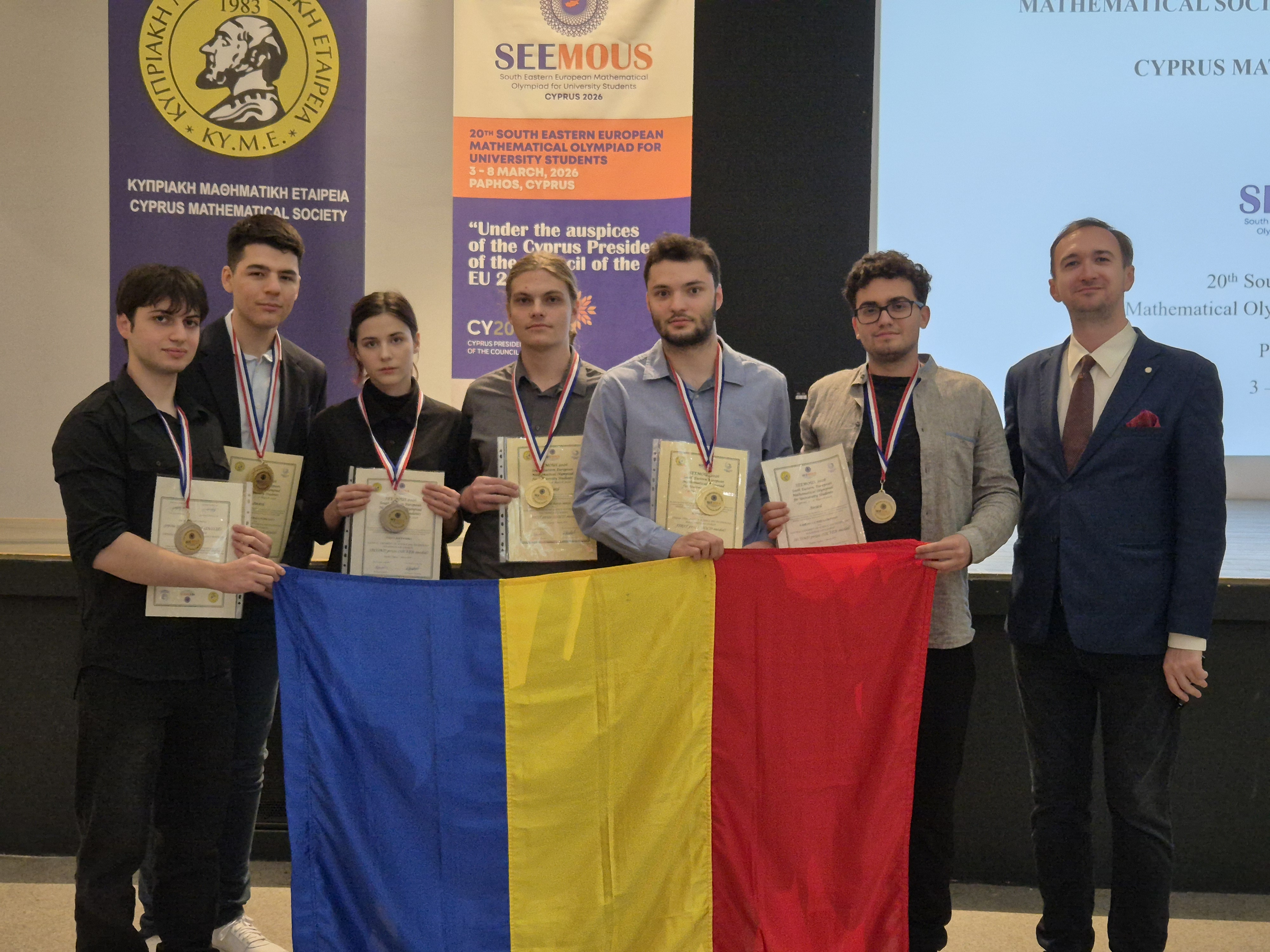 Between March 3 and 8, 2026, in Paphos, Cyprus, the 20th edition of the „South Eastern European Mathematical Competition for University Students” (SEEMOUS 2026) took place. The competition was attended by 94 first- and second-year students, representing 29 universities from Albania, Bulgaria, Cyprus, Greece, North Macedonia, Romania, Serbia, and Turkmenistan. The students of POLITEHNICA Bucharest obtained three gold medals and three silver medals, thus ranking the National University of Science and Technology Politehnica Bucharest in first place among the participating universities: